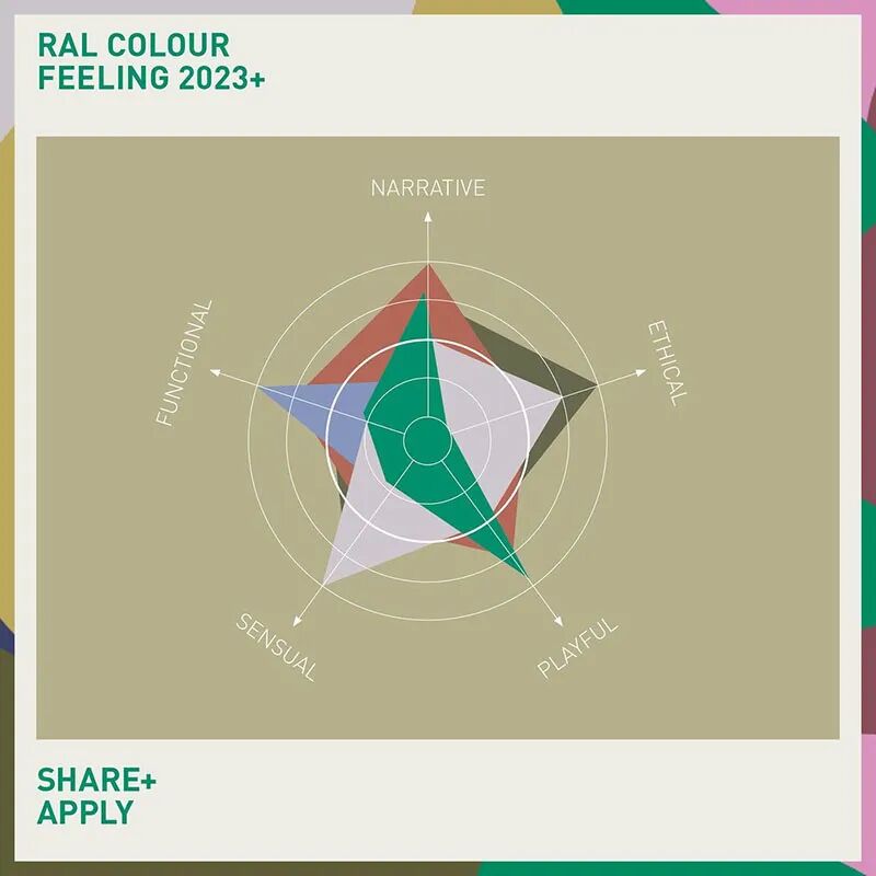 《劳尔RAL颜色趋势体验2023+》趋势主题SHARE + APPLY(分享+应用),源于为尽可能多的人提供鼓舞人心且易于应用的灵感想法。由于前些年持续严峻环境给每个人带来紧迫感,有针对性和负责任的颜色选择趋势可以疗愈人们的情绪,并起到正面积极作用,RAL劳尔为我们分享关于工业建设色彩设计的知识,并期待看到各个设计师对此趋势的应用。