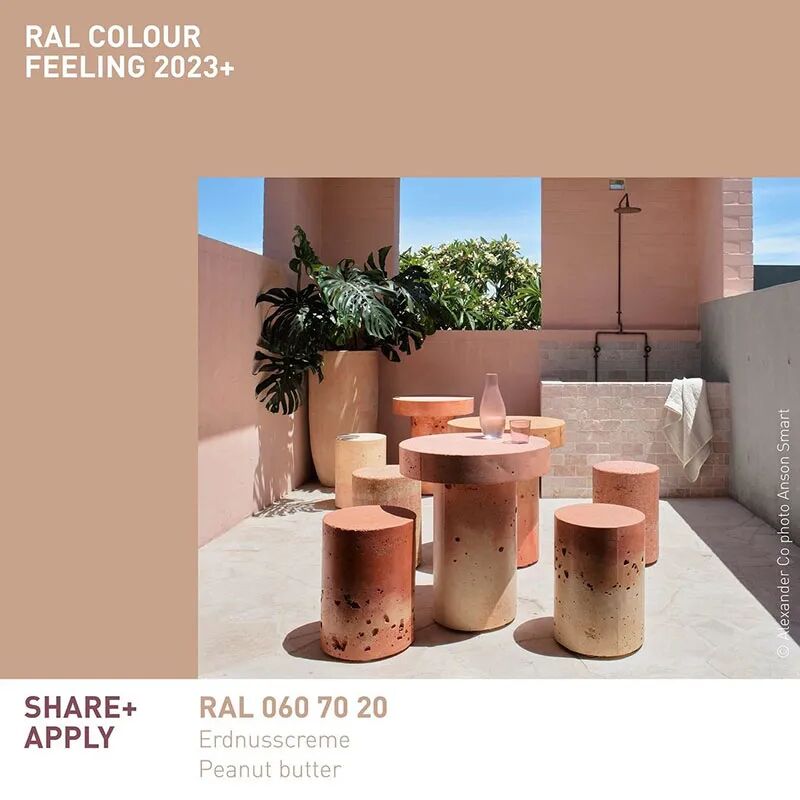 RAL 060 70 20是一个色相来自橙色范围(060°)的颜色,明度相对较高(70),彩度相对较低(20)。花生酱是营造温暖和轻松氛围的理想选择。这种永恒的颜色让我们联想到粘土和砂岩,比最近流行的许多米色和灰色更感性。考虑平滑和粗糙饰面的融合来创造现代感。