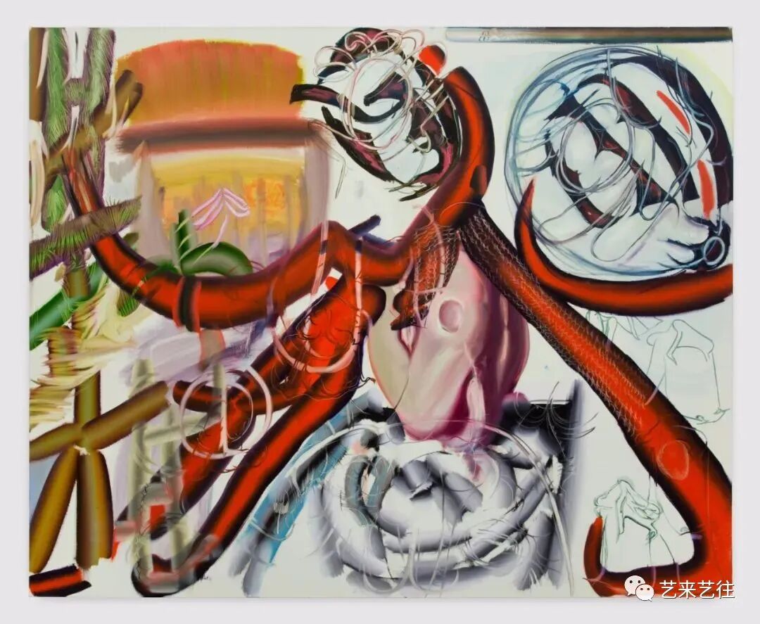 在耶鲁大学攻读艺术硕士学位的一段时间里,奎因开始刻意回避绘画中的结构。2019年毕业的奎因回忆说:“像这样的课题大部分时间都让自己很崩溃。”她在大学收藏中看到的立体派画家费尔南德·莱热( Fernand Léger)的一幅线性作品,给她留下了深刻的印象。她说:“我认为莱热的创作在组织方式上与我是相对的,我想运用这种组织方式做点什么。”由此她决定以自己的方式去展开创作,奎因决定以管状的形式开始她的绘画,这后来发展成为画面中“弯曲和打破的规则”。这种方法最终“解锁”了她的作品。