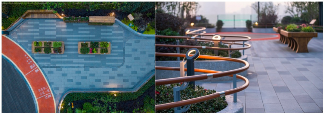 此外,考虑到无障碍通行,该项目中的屋顶花园采用全场地无台阶和双层扶手设计,地面采用防滑材料,场地边缘倒角处理,保证老人使用的安全、便利与通畅。