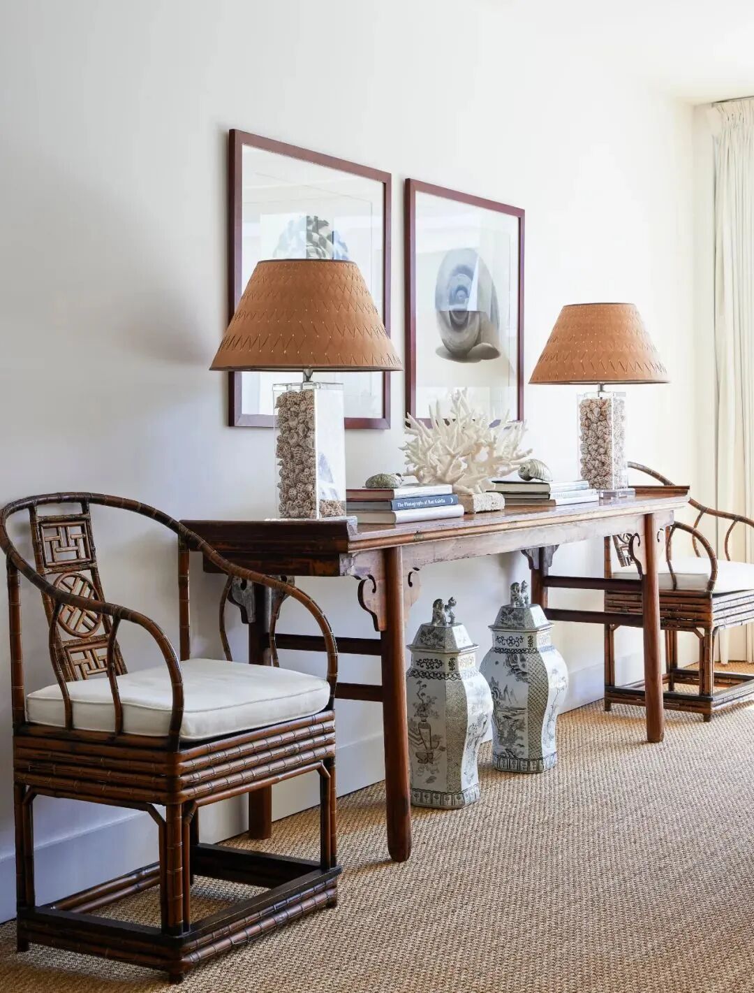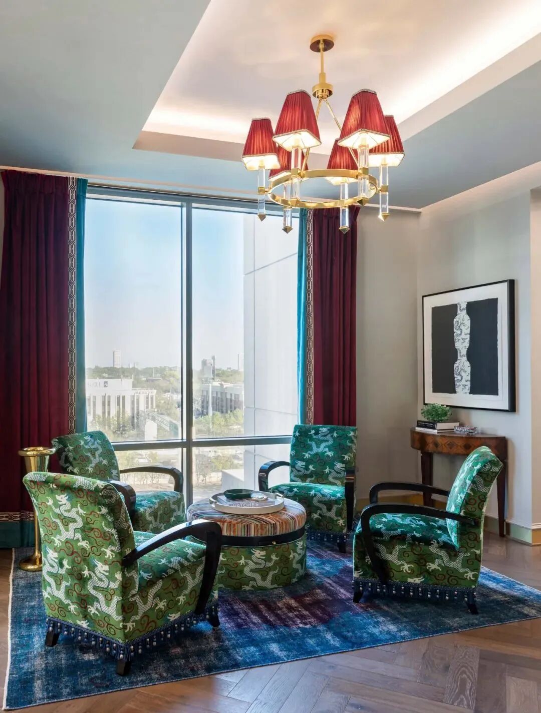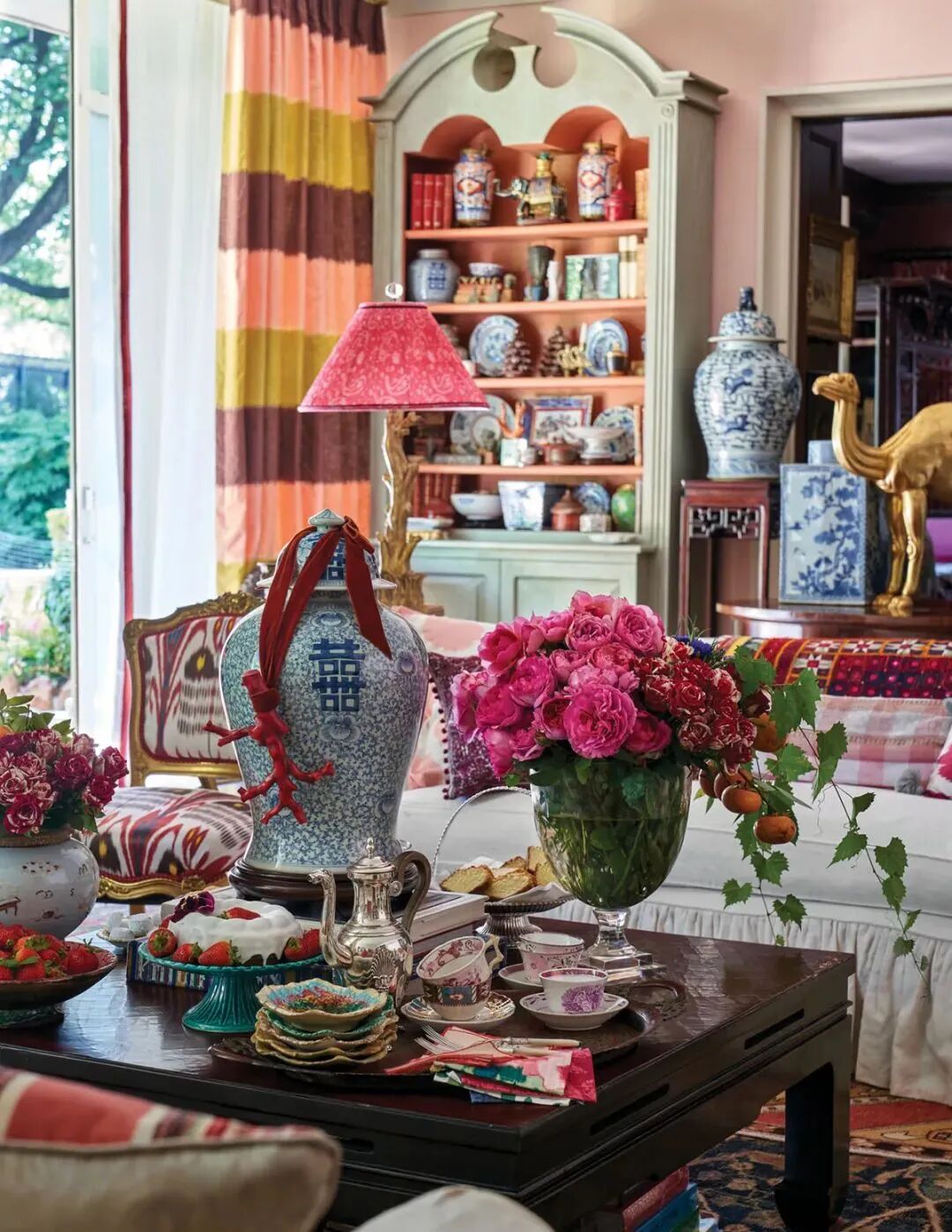 Courtnay Tartt Elias说:“在休斯顿,一切都会发生,这就是这座城市如此有趣的原因。从传统到法式到现代工业......每个家庭都有自己的风格,这里的房主都喜欢把东西混在一起!”绿色底色的龙纹沙发展现着东方情愫,雅致的青花瓷与蓝白布竹椅相呼应,起居室的文化氛围丰富多彩,这里不仅彰显着屋主的品位,更是他们的精神巢穴。新年新气象:对东方文化的深度理解和精准输出。