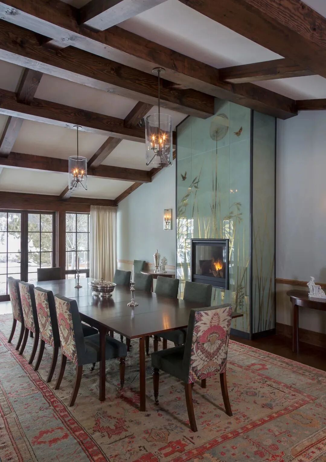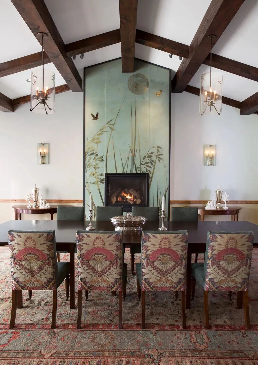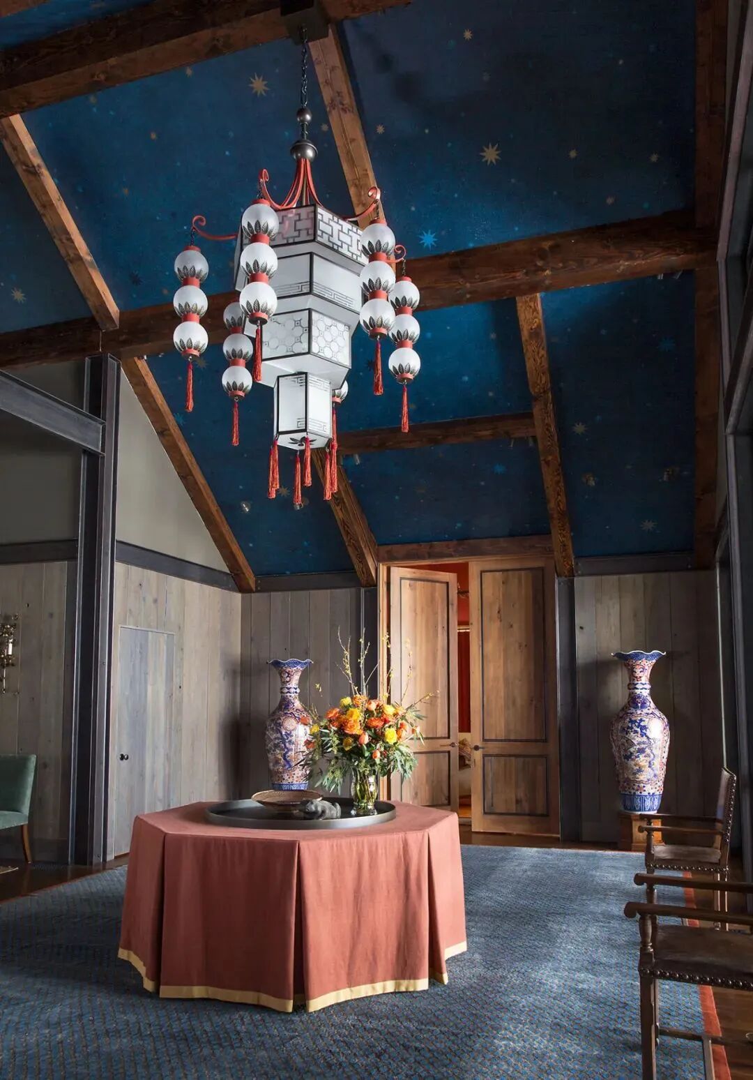 Thomas Jayne秉持着“传统即当下”的设计理念,打造每一个质感丰富、精致细腻的设计作品。这座蒙大拿州的小屋最初建于20世纪80年代,用于度假和招待客人,传统的装饰看起来过时了。回顾了19世纪末20世纪初蒙大拿州早期的房屋,设计师尊重环境的质朴特征,但也保留了住宅所具有的精致和奢华元素。门两侧的中国瓷器花瓶最初在电影《Annie》中使用的,它们被放在基座上,以增加高度。精心设计、优雅的前厅,带有彩绘的夜空天花板,对于经过漫长的路程到达酒店的游客来说,是一种欢迎,也是一种戏剧般的惊喜。本文来自微信公众号“安德马丁”(ID:andemading)。大作社经授权转载,该文观点仅代表作者本人,大作社平台仅提供信息存储空间服务。
