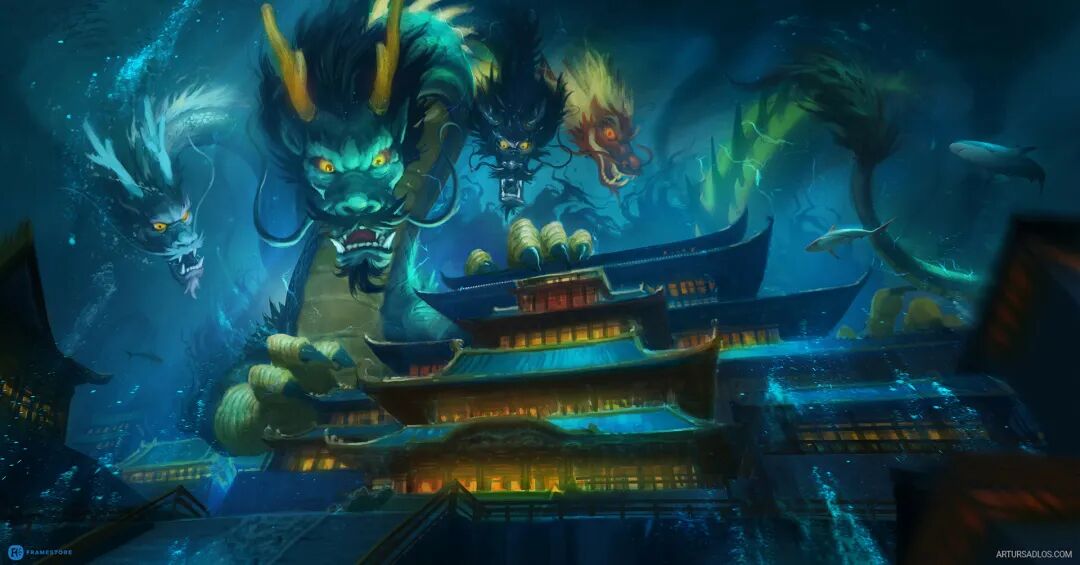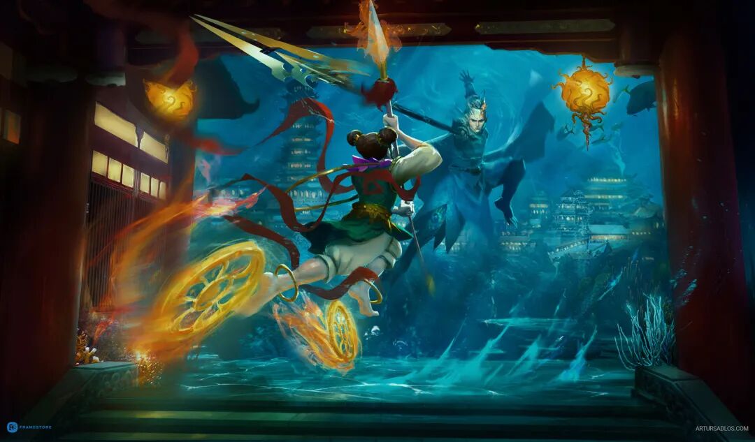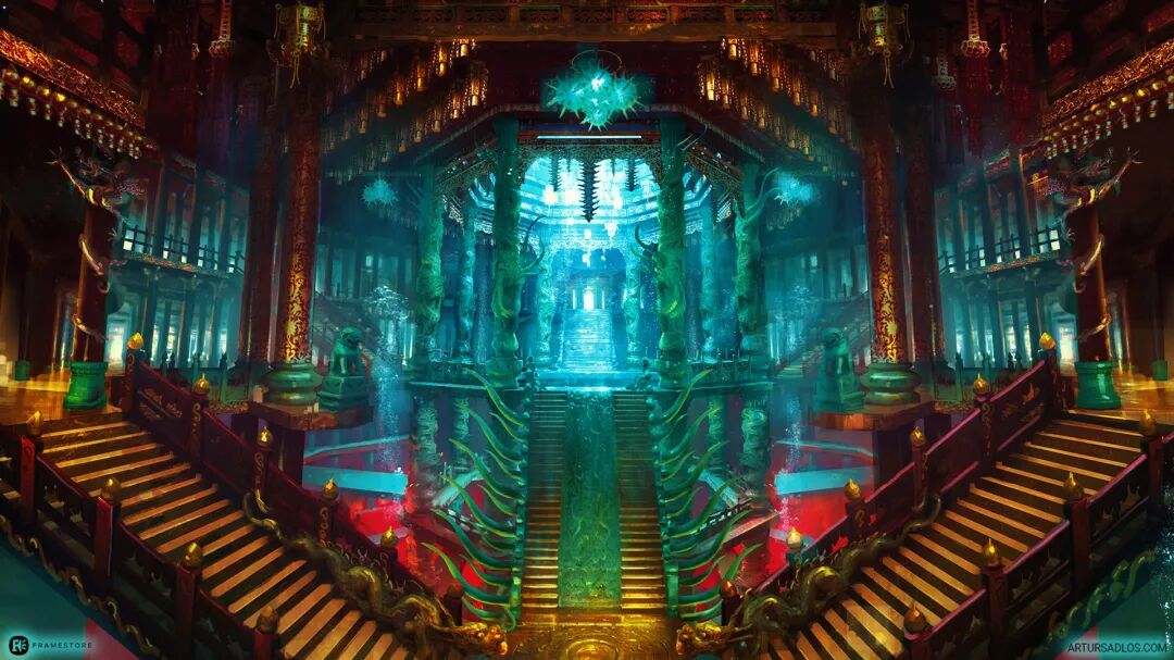 这组魔幻风格的作品很有视觉冲击力,色彩和氛围都很强,并且融入了许多中国元素,再加上西方艺术家自身对于中国神话的理解,创造出来的概念艺术也别有一番韵味。