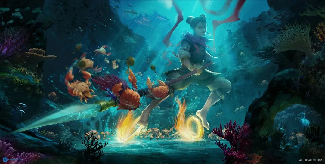 欧洲著名视效与电脑动画工作室Framestore曾为青岛万达创作过以“哪吒闹海”为主题的影片《Pearl Quest》,Artur Sadlos负责其中部分龙宫场景以及生物的概念设计。