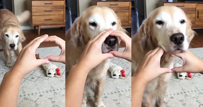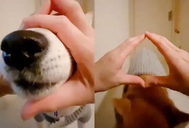 那么,这个梗是什么意思呢?相信聪明的姬友已经猜个八九不离十了,这个更其实来源于日本的“snoot挑战”,即用手比划个圈圈,狗狗自己就会钻到圈圈里。