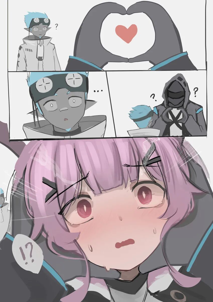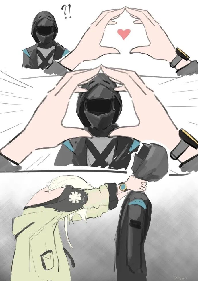 双手比个心,小脸就吸入了😋,真不错,很多同人作者应该是也觉得这个灵感挺好的,于是就像抖音拍同款一样,出现了一些这种同人绘图。