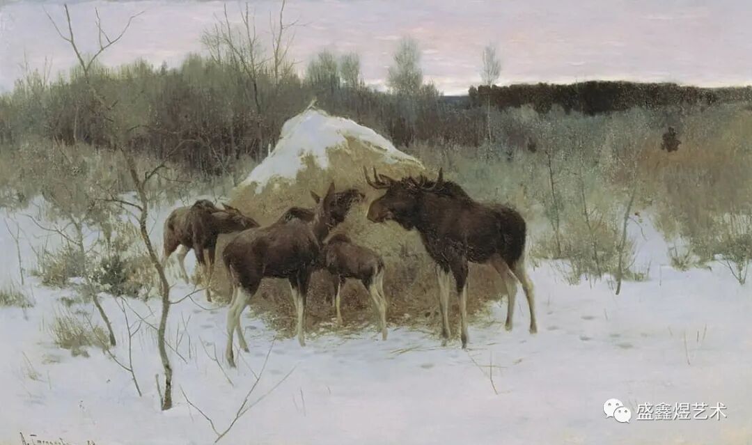 1888年,斯捷潘诺夫与流浪者合作并参加了展览。1889年在流浪者展览会上展出的《驼鹿吃干草》这幅画受到公众的热烈欢迎,并被P.M.购买。特列季亚科夫的著名收藏。