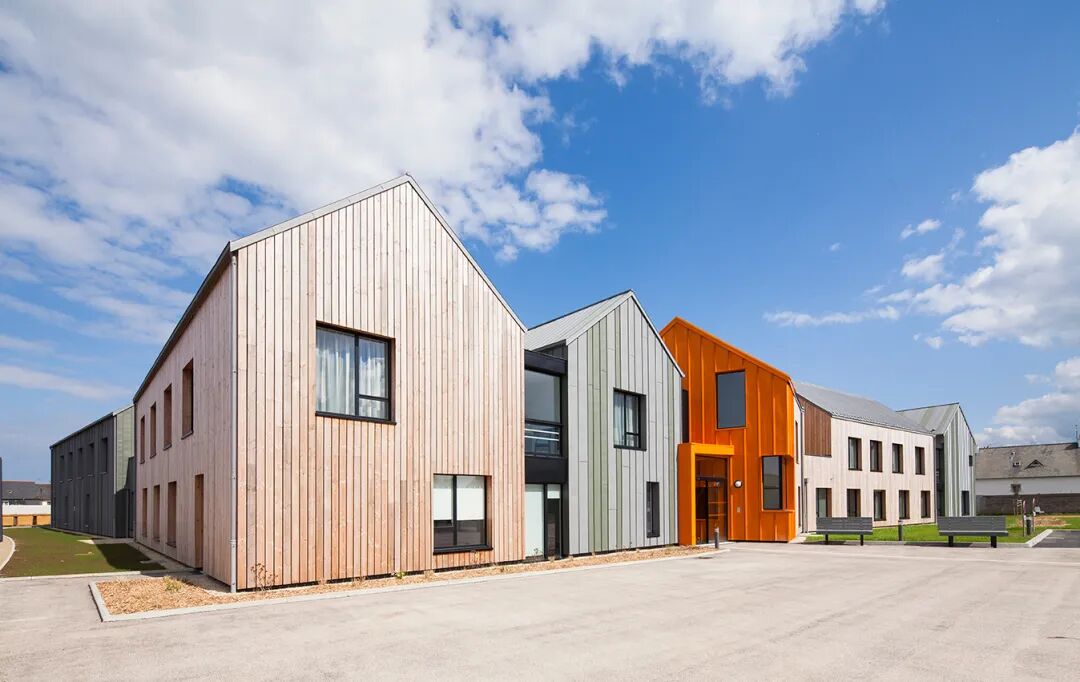 这种大胆的色彩运用还可以在其他房屋中看到,比如法国的圣布里厄老人院,它拥有色彩缤纷的内部和外部,有目的地为空间注入活力。设计尊重地区的住宅性质,将项目分成九个小街区,并借鉴传统的双坡屋顶建筑规范,材料和颜色的排列进一步区分了住房单元,增强了社区居民的个性感。