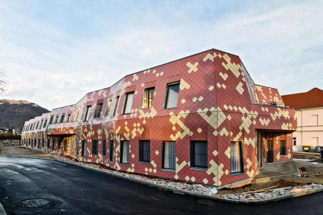 奥地利的Hainburg疗养院是无障碍和战术设计的另一个很好的例子。内部每个住户的卧室门前都设置了壁龛,从而将走廊变成了活跃的流通和聚集空间,是住户房间的延伸。内部表面根据它们的重要性进行材质的划分:层压板、油毡和木地板。同时,与许多疗养院平淡的外观相反,这个奥地利项目外立面用彩色菱形永恒木瓦图案包裹着,为居民称之为家的地方提供了独特的身份表达。