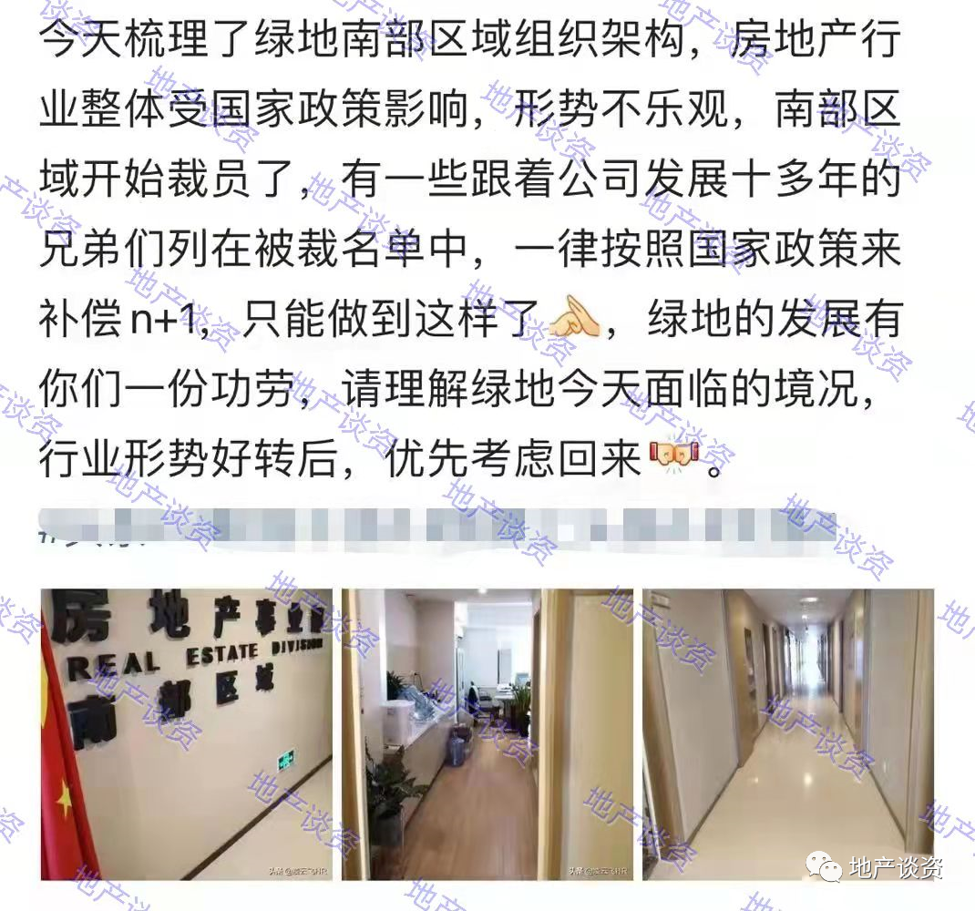绿地近期又双叒叕开始裁员了,根据一位绿地负责人力的朋友,对外透露出的消息,绿地南方大区近期正在进行规模裁员。如下图: