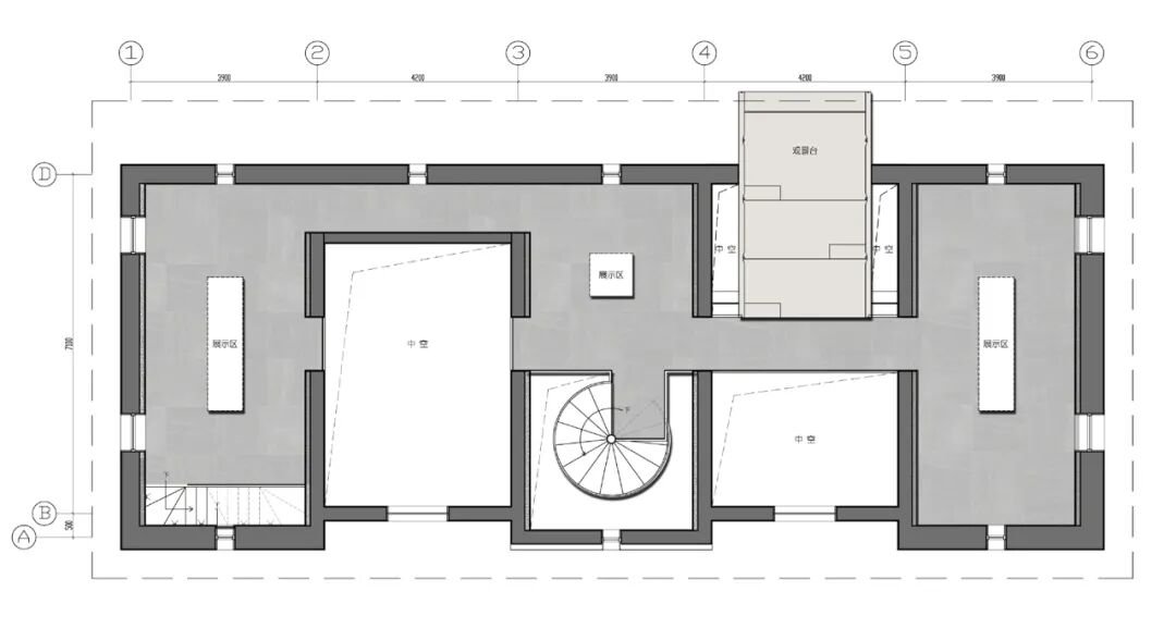 原房子单层面积比较有限,策略上规制各个功能的尺度合理性,同时应对特殊功能场所予以了足够的空间体验,并且内部反其道在创造了一个超乎寻常尺度的公共空间,小房子里我们切开了一个口子,通过空间动线改道重塑加上各楼层自然光线的引入,打造一个三层通高的超常规尺度的空间。