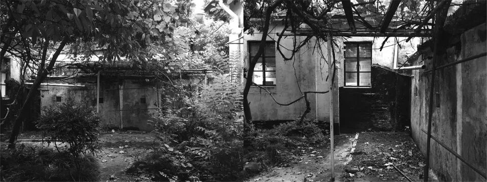 庭院虽被绿意包围但年深日久,渐次荒芜,杂草丛生。有些植物陷入建筑外墙缝隙生长,墙体开裂,长期渗水,存在严重的安全隐患。