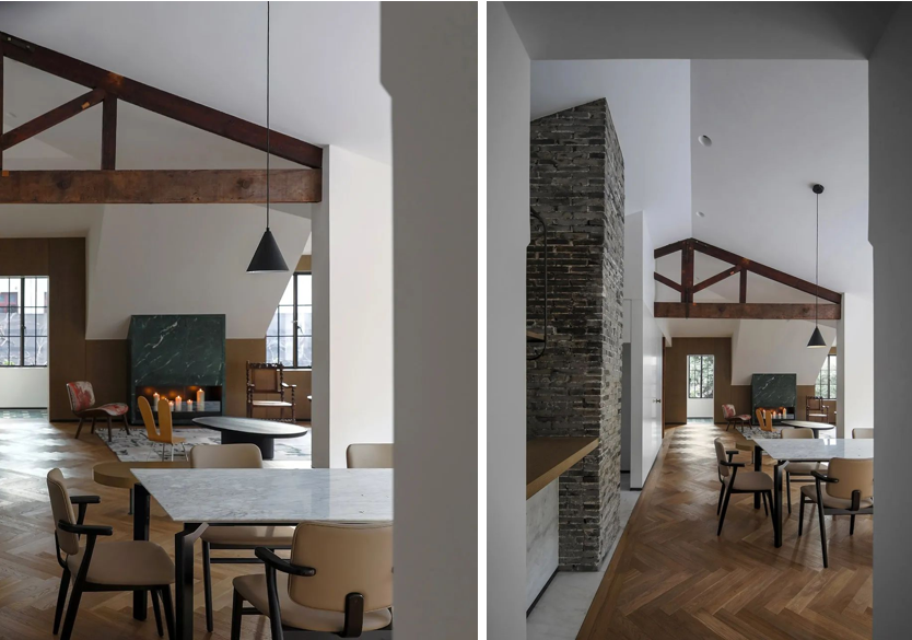 以原建筑为依托,保留了原有的雕梁画、转角石墙、木门框等有意义的物件,这些旧物保留了古韵,是岁月洗练后的古朴简雅,呈现它们最原始、不尽完美的状态,这种美超越了时间,历久弥新。