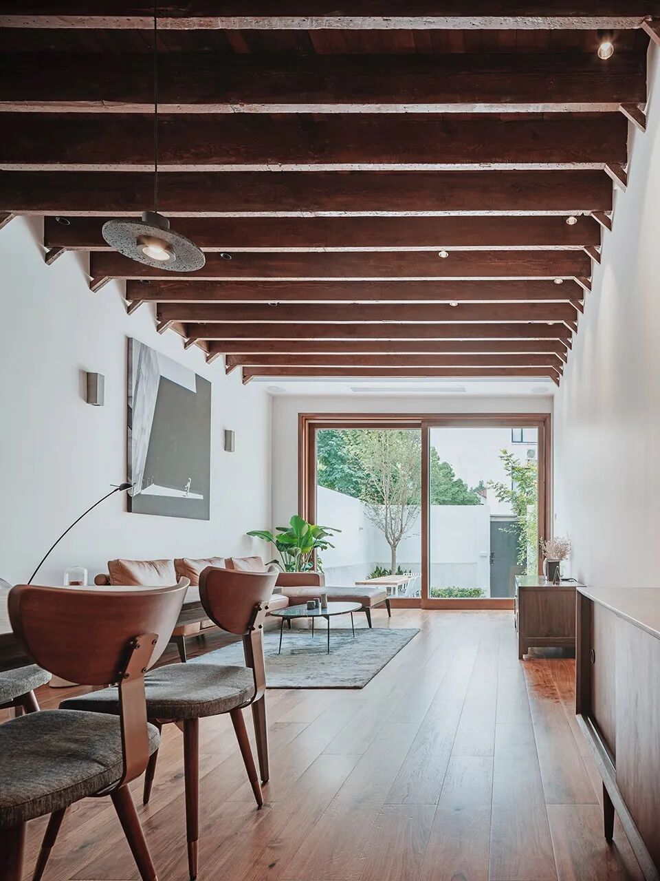 将老房子抽丝剥茧,正如字里行间的隐喻,在老旧的吊顶之上,在发黄的墙壁之下,隐藏着老房子跳动着的灵魂——保存完好的木梁、木楼板、木屋架。