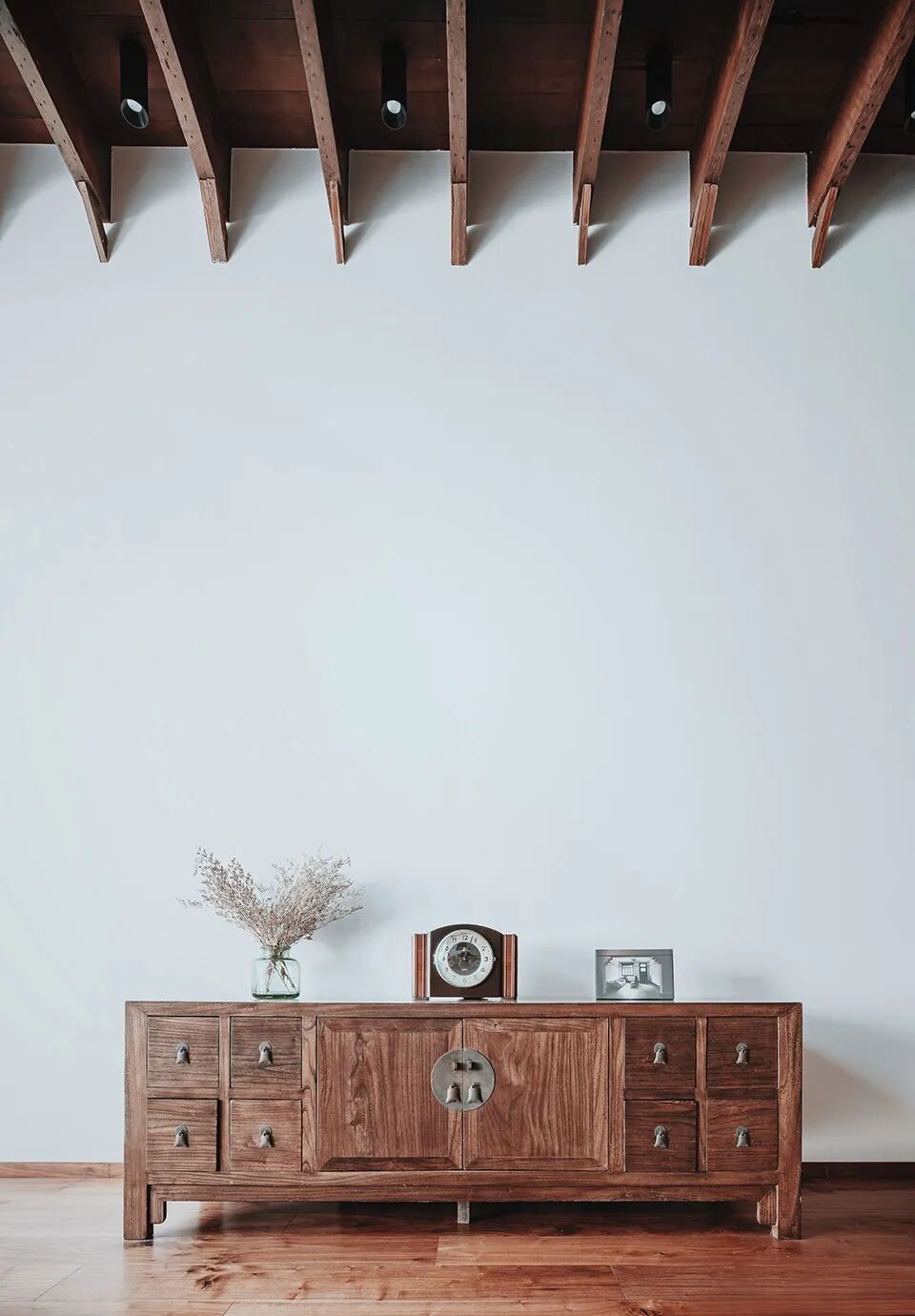 对于即将开始的新生活,作为这栋老房子的续集是下一段新的故事。但是续集总要与前文有所呼应。老房东留下的一口胡桃木的卧柜和三五牌的停摆的老钟成了一个开始的契机。柜子和钟组成的胡桃木色的沉稳基调,顺理成章地承接着老房子的主旋律开启了序章。时间之轮在开始改造的那一刻重新启动,老房子生锈的心脏重新开始跳动了起来。