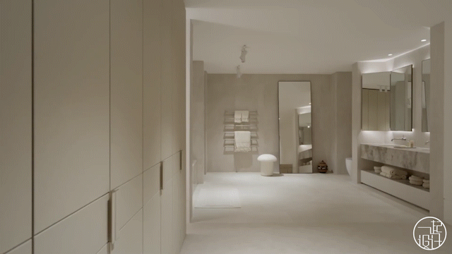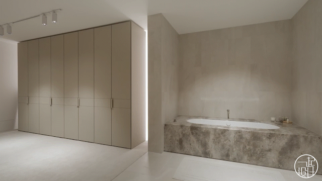 嵌入石材饰面中的浴缸与石材花纹的瓷砖搭配,碰撞出满满质感▽