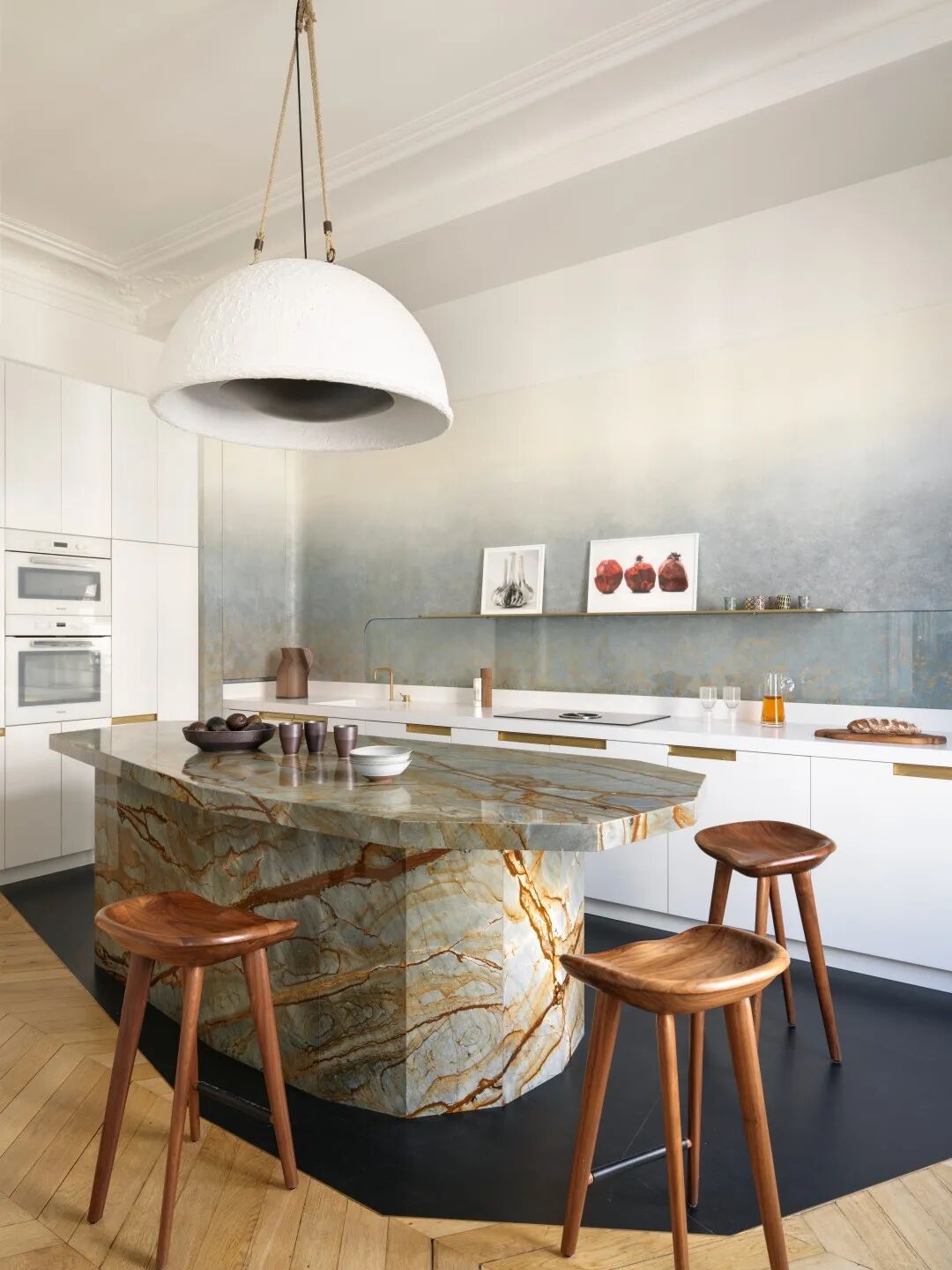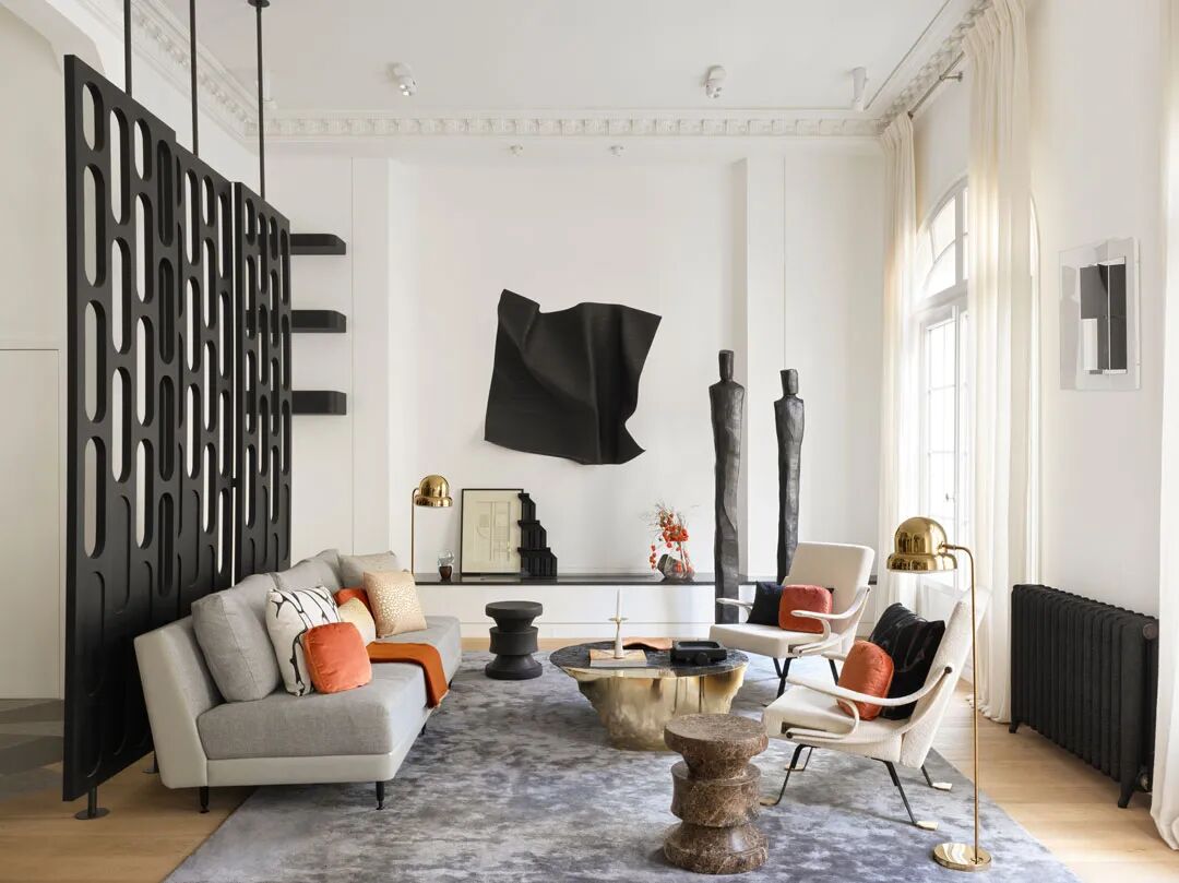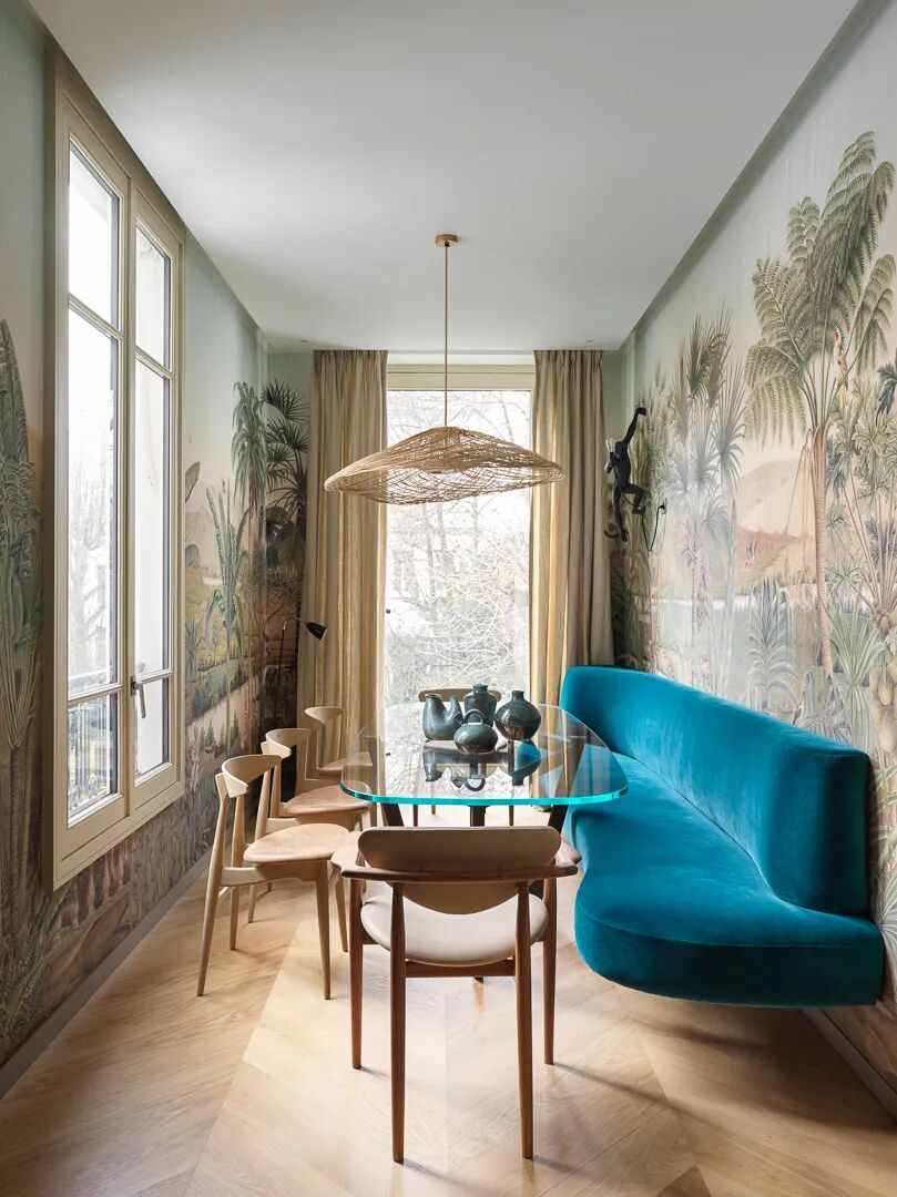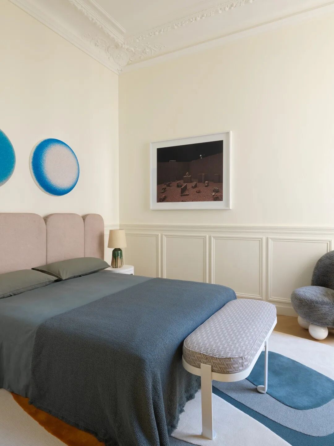 设计师Le Berre Vevaud和Thomas Vevaud为艺术收藏家打造了整个家,不仅体现了原本的建筑美感,同时结合了舒适的生活方式,呈现了一个极具艺术氛围的梦想空间。室内的设计有着孟菲斯风格,也有着现代艺术感的法式优雅。