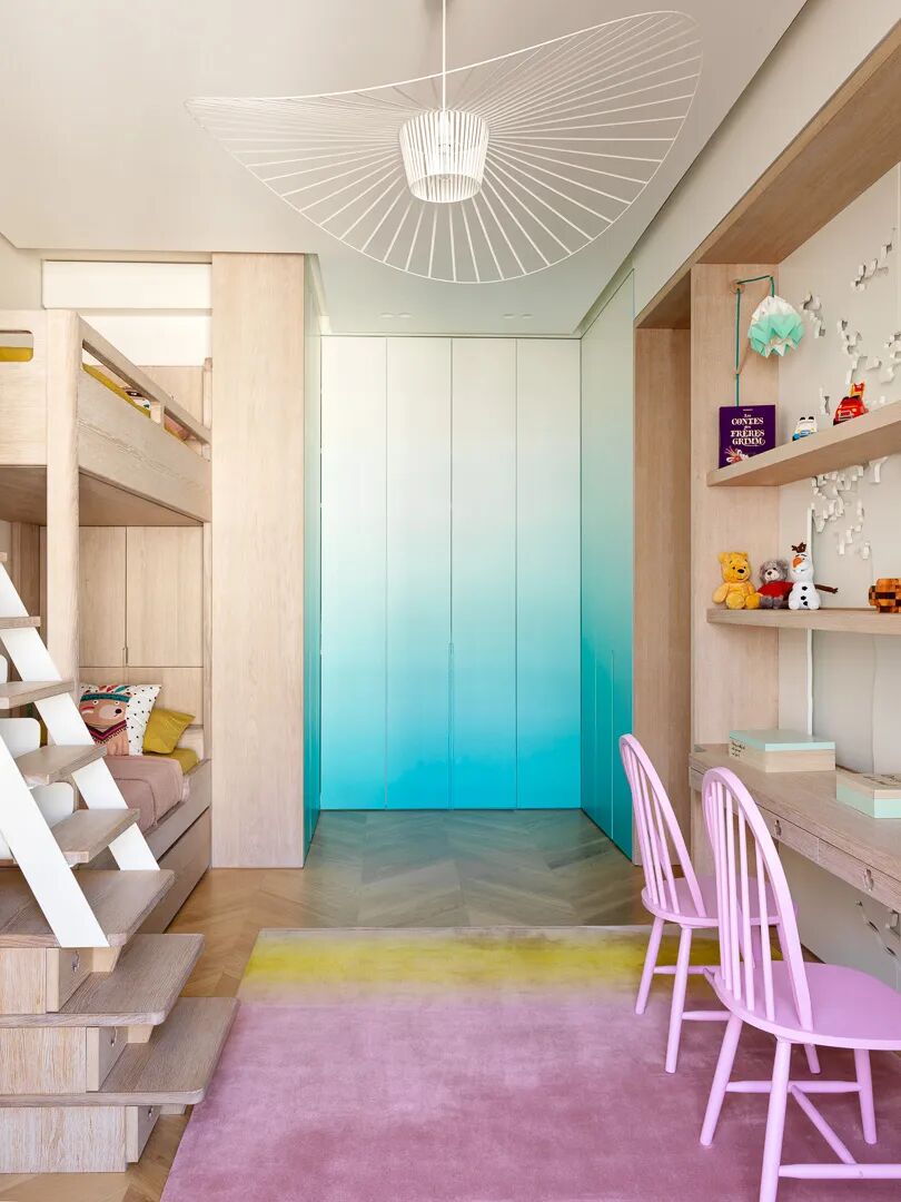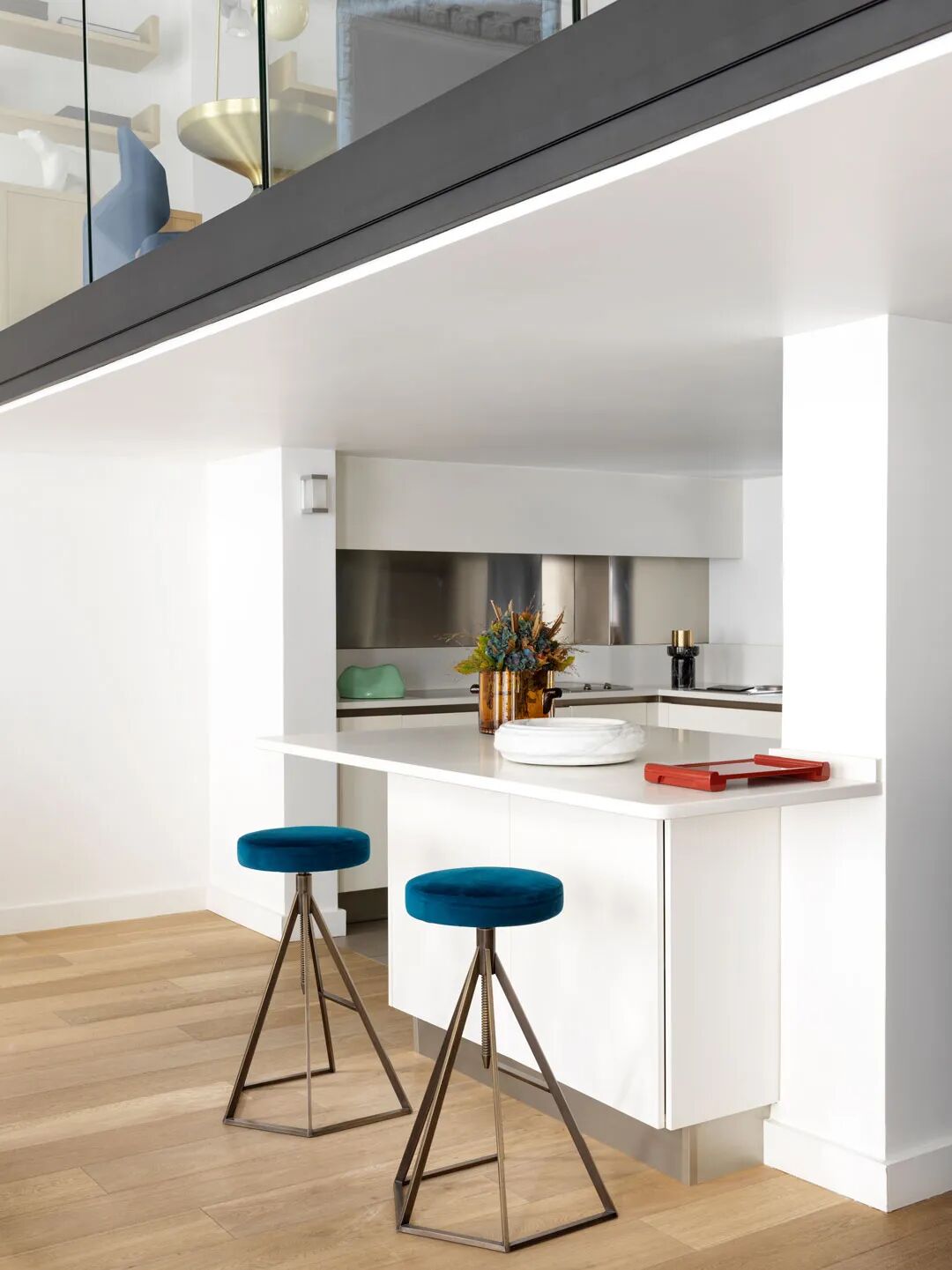 Le Berre Vevaud运用色彩的能力十分精准,他们在平静的空间里制造了一方小惊喜。这个面积160㎡的公寓整个空间的底色是舒适的中性色,设计师用色彩和造型让整个空间时尚又个性鲜明。