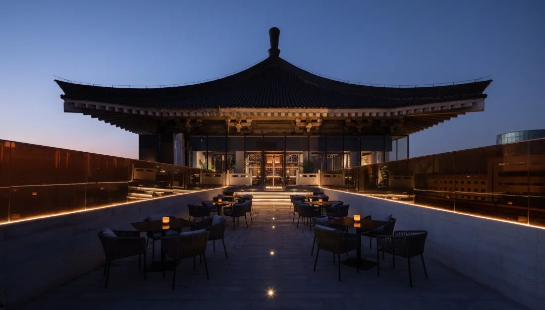西安,自古至今,风土民情直率活泼。除了运用遍布各楼层材料的颜色,呈现出当地文化色彩外,透过对古建筑的惊叹,将14楼层顶的夜间RGB灯光设定为红色,更为西安Le Coq多增一抹热情的性感。