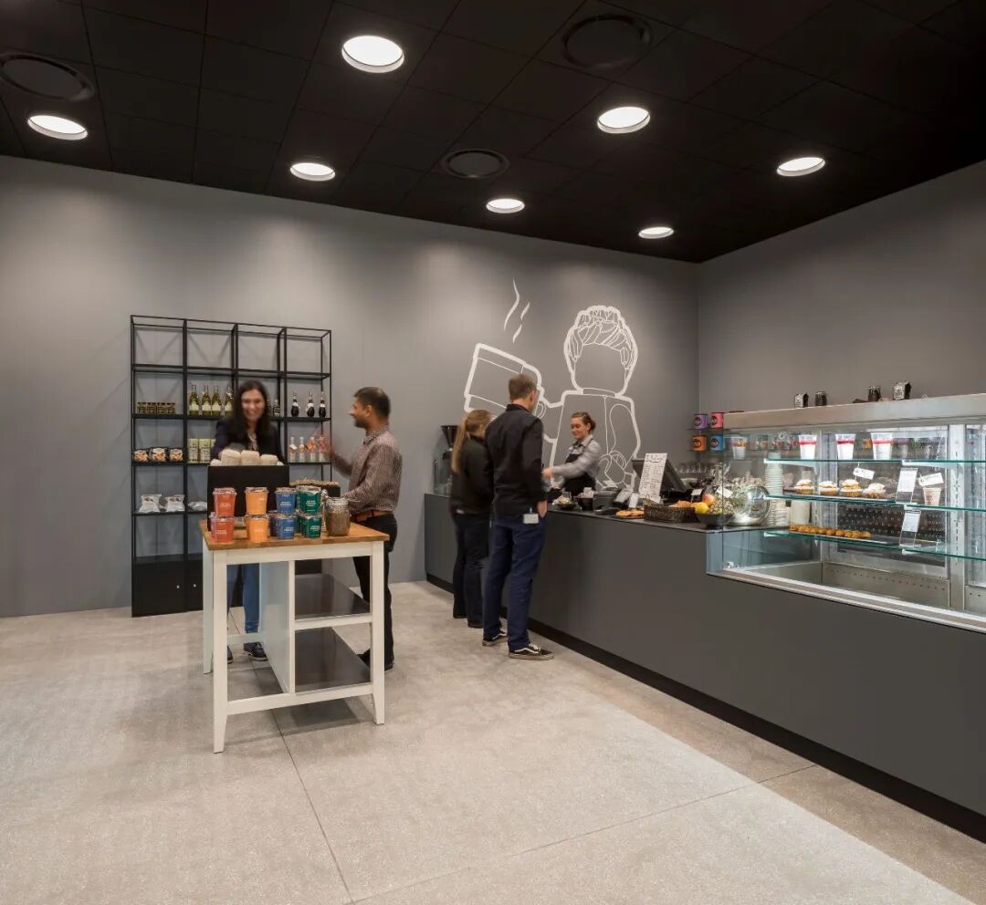 当然,餐厅和咖啡馆也是必不可少。简约的设计让这些空间成为员工们休憩的绝佳场所。