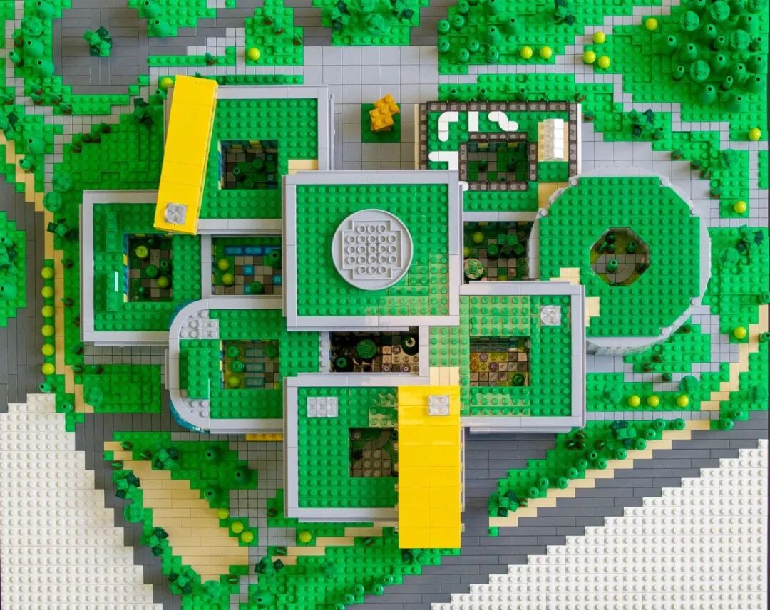 当然,作为乐高的拿手好戏,乐高也为这栋建筑用乐高积木拼出来了一个还原度 100%、独一无二的建筑模型。
