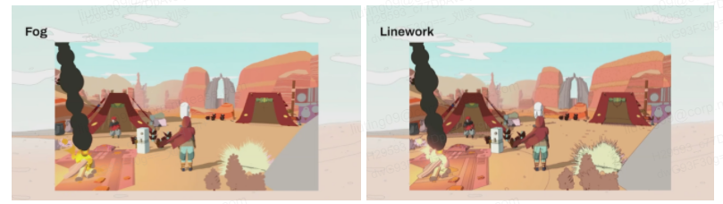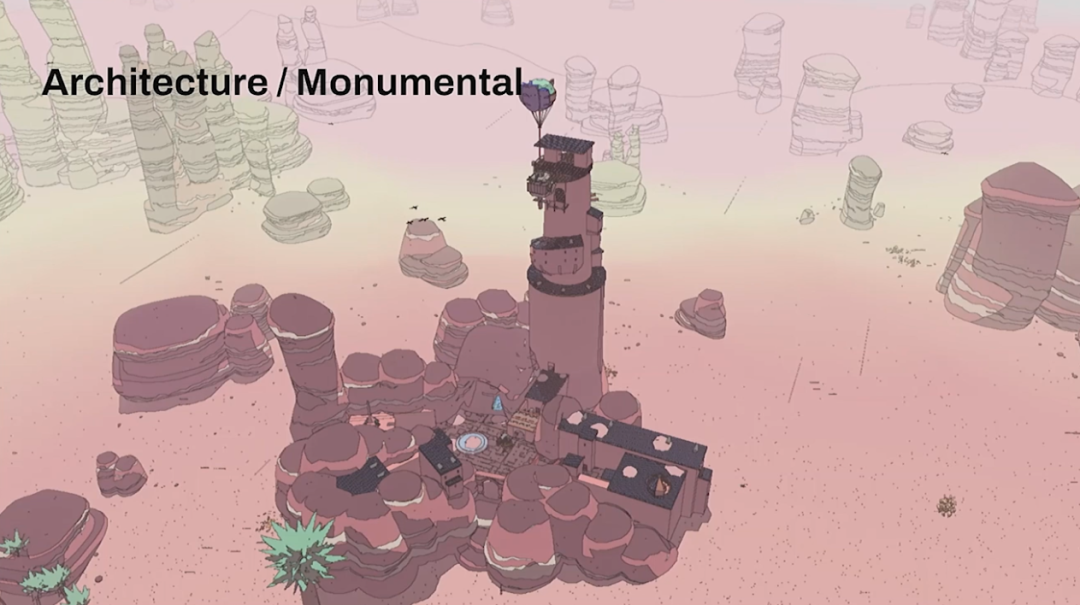 《Sable》最终呈现的独特艺术表现风格是由多种要素构成的,演讲者Kythreotis介绍了这些视觉效果的实现方案。