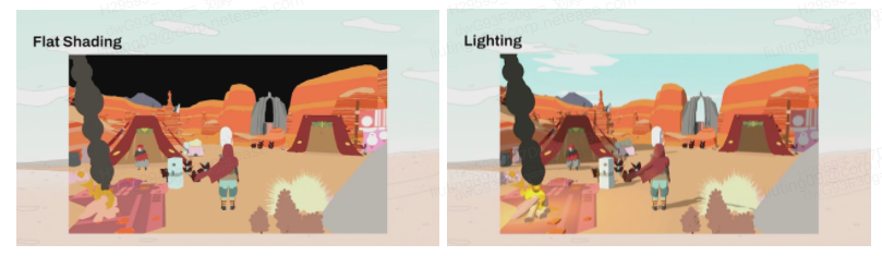 另一个关键要素在于色彩。色彩是更易被识别的游戏视觉元素,可以传达情绪、提供环境基调和多样性。例如在沙漠中,玩家最初可能只感知到一种风格,但通过改变色彩,创造出昼夜循环,便可以在时间推移中感受到同一环境不同基调的转换过程。