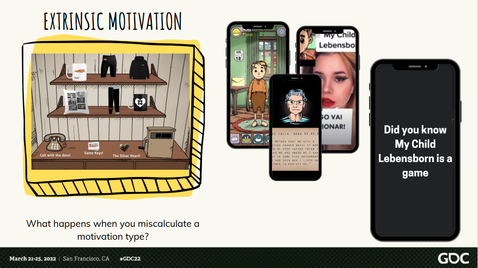 例如在《我的孩子:生命之泉》的研发过程中,开发团队曾经尝试过举办一次大型的玩家福利活动,鼓励玩家在TikTok上发布自己的游戏视频并加以自身对生命之泉相关历史的了解,以赢取游戏周边、激活码、与开发团队对话等奖励。然而作品的回收质量却并不尽如人意,一些玩家仅仅是上传了“完成任务式”的视频。在活动复盘中开发团队开始思考,如若将此次活动包装为一项为了公益或是进行自我奉献的分享活动,作品质量是否会有很大的提高。而单纯使用奖励作为外部刺激,是否只能使玩家花最少的精力去完成任务以获取奖励。