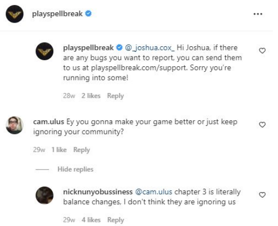 图:《Spellbreak》发布内容时一些玩家对无关内容的抱怨