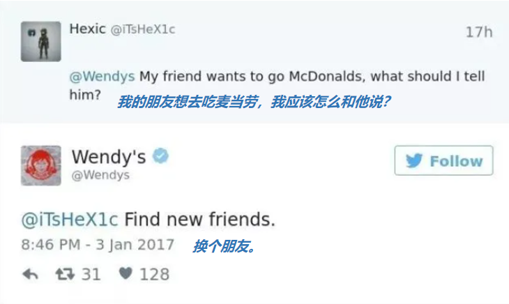 社区的运营风格并没有对错之分,只有适合或者不适合。演讲者为大家介绍了4个例子。首先是“Wendy’s”(温蒂汉堡,美国第三大快餐连锁集团)。“Wendy’s”(这里指他们的社区运营)在社交平台上对粉丝们非常毒舌,但这并不会真的影响大家对品牌的看法,相反,对于这样一个历史悠久的企业品牌,这会让大家觉得它非常有趣。