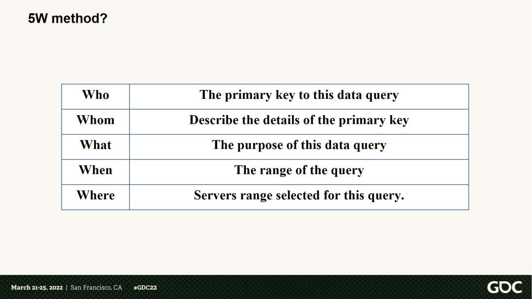 在这个目标下,我们制定了5W规则来形式化处理策划的数据需求。我们的5W包括: