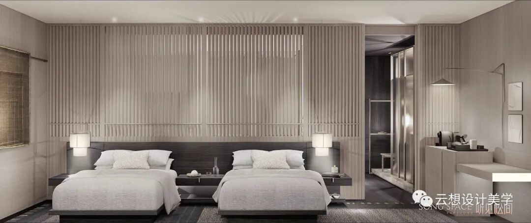 来到SPA水疗空间与泳池,则如置身于郊外的禅宗寺庙,宁静、祥和的冥想氛围,生活的周转从不间断,体验建筑中的郊野感,更像一次奢侈的喘息。