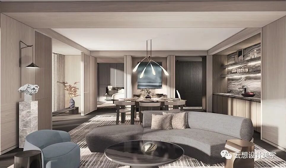 一如日本电影里以配乐和空镜表达悠长意境的手法,伴随无主灯设计,室内光源照明更均匀,同一个空间内用单一石材、没有夸张的纹理和造型,“线与面”的组合,不做任何刻意的“拼花”...