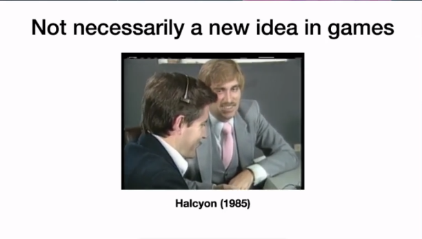 Voice-Activated是「语音激活」的意思,当你想使用语言的时候总是要做些什么的对吧?很显然也包括音频,它有一些语言组件,而且它并不是一个新的东西,第一个被周知的就是语音国际象棋,来自一个大学的研究项目,它真的是太棒了。用户在下棋的时候,像使用Mayo一样,你会命令棋子去移动。这个游戏的运作方式是通过用户使用命令,而传达到游戏里,游戏执行用户刚发出的命令。