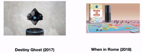 另一个很受欢迎的游戏——《Destiny Ghost》。它是一种与Alexa互动的方式,它会帮助玩家玩游戏。Destiny是一个非常庞大的游戏,有很多任务事情去做,玩家通过和虚拟角色说话,它会告诉玩家哪些是当天要做的事情,它会根据玩家所做的事情以及游戏里发生了什么而做出反应。