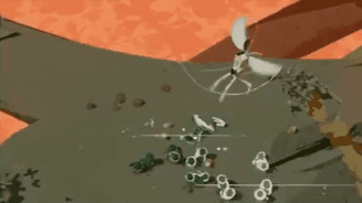 再比如《Stonefly》中制作了球状电极效果,像真空或者黑洞,可以把虫子拉到一起,这样就可以用一阵大风把它们全部击倒,而当玩家完成收集后它们又会飞起来。