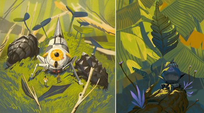 《Stonefly》的非致命战斗设计与其冒险故事的基调和叙事紧密关联。《Stonefly》的整体游戏基调是,整个世界处在大自然环境中,由微观的角色和机械组成,一切事物都微小、美丽。这是一个宏伟而庞大的宇宙,背后蕴含着很多传说和意义,人物塑造得十分有科幻感,而大自然是这个世界的核心。正如游戏早期概念设计所表现的三叶草下的奇妙世界一般,当玩家驾着机甲蹦蹦跳跳时,灯光会设计得非常戏剧化,既科幻又与自然融为一体;背景是温暖的黄绿色调,有明媚的阳光,大自然中的一切都是平静舒缓的。