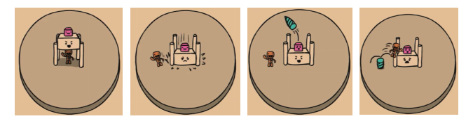 在“螃蟹兰提斯王国”世界里,玩家可用特殊抓钩,用来摆荡、抓住或推远物品,为结合该武器在boss战中的使用,boss初步设计成可游走在地面上下的怪物,玩家可用抓钩躲避伤害,以及和boss进行拔河式的力量对抗。