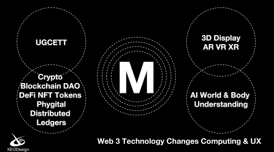 目前要实现这几个步骤,可以运用到的技术有3D展示(AR\VR\XR)技术、区块链技术、人工智能技术等。可以说全新的交互方式带来了全新的用户体验,旧有的“WIMPS“传统体验方式,即界面窗口、图标、鼠标、指针和单机玩法将不复存在,取而代之的是用于全息世界的用户体验模型“WHOAS”,即世界、手势、物品、虚拟替身和社交协作。