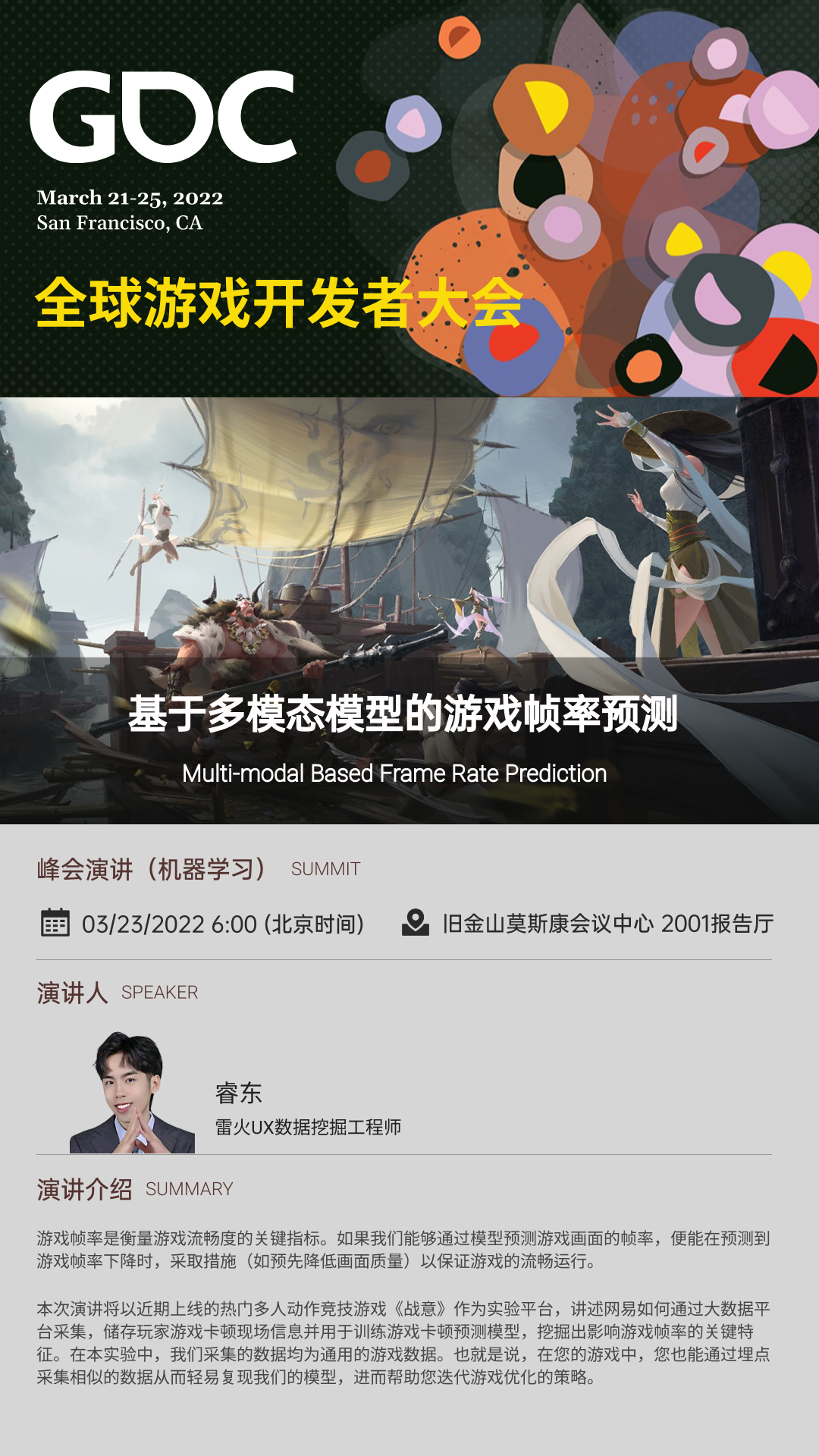 接下来雷火UX公众号将陆续为大家进行介绍。本篇为大家介绍的是来自雷火UX数据挖掘工程师睿东的演讲——基于多模态模型的游戏帧率预测。