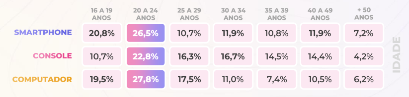 各年龄段玩家在手机、主机和PC平台玩游戏的比例