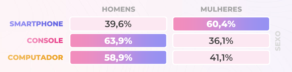 左列为男性,右列为女性;从上到下三行依次是手机、主机和PC