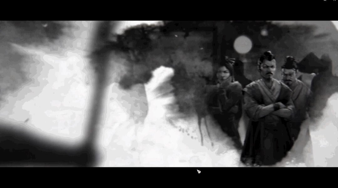 《全面战争:三国》中,在玩家选择了领袖派系以后,有一段视频简单交代故事背景。这段视频主要是由一些2D原画资源和转场特效制作而成的,水墨画风和符合故事情绪的镜头运动对游戏“汉室倾颓,群雄并起”的世界观有很好的表达。其中也有一些水墨渲染风格的3D模型,对增加画面丰富度也有很强的作用。