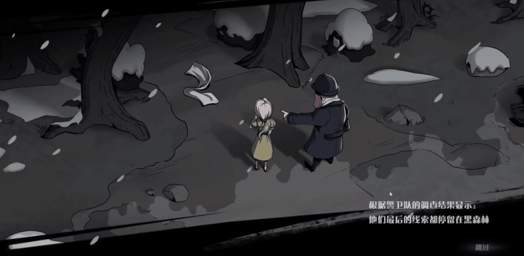 《月圆之夜》中就用了较为轻便的图文方式告诉玩家“外婆失踪了,小红帽前往黑森林冒险”这个大前提,将一路上的各种战斗和buff关卡都串联了起来。