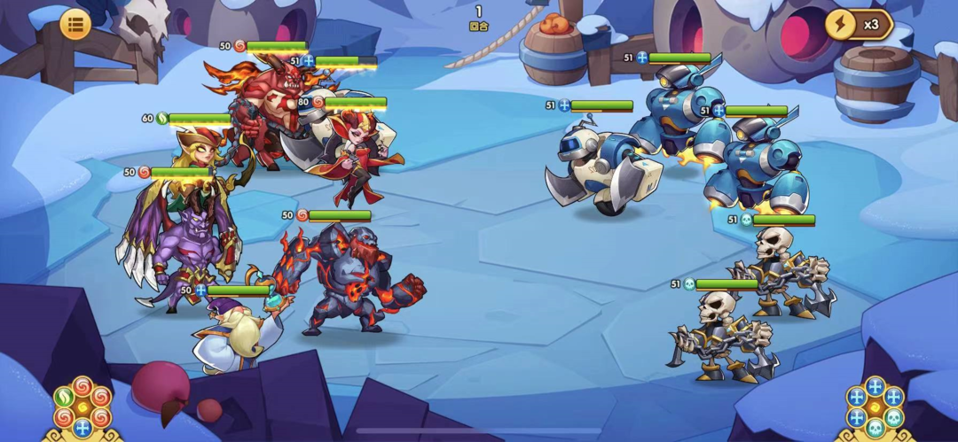 从流程角度分析,在主线战斗模式中玩家行为一般是战斗前构建英雄阵容,战斗时手动或自动释放英雄技能,观看战斗过程,成功则收获战利品继续下一关战斗,失败则调整或强化英雄阵容;而英雄自动进行战斗,游戏结算战斗数据,然后呈现结果。玩家的行为主要集中于战前阵容构建,而整个战斗的发展和结果,各种对战细节、战利品等都是玩家决策阵容后衍生的结果。从操作——反馈这一体验设计原则来看,玩家操作行为精简了,但其决策结果被极端强化了。