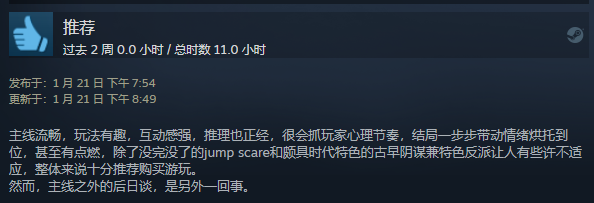 Figure 6-8 《重返蓝鲸岛》Steam的部分好评截图