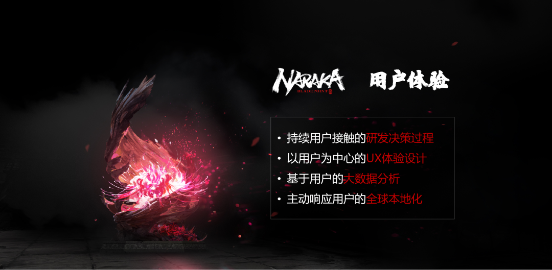 刘勇成老师以成功产品《永劫无间》为例,讲述了从启动DEMO到全球上线不到3年的时间,在不同开发阶段雷火UX各职能团队如何帮助游戏优化用户体验,最终打造爆款并成功出海的心路历程,帮助同学们充分体会到用户体验对产品成功的价值所在。