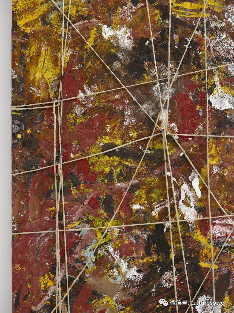 这一概念在《束缚III》(2020)中得到了体现,这幅画布上覆盖着一簇结实的坚果棕和赤褐色,与蜂蜜芥末黄形成鲜明对比,略带白色和一丝哥斯达黎加蓝色,然后完全包裹在迷宫般的绳索中。尽管这部作品很累赘,但它的韧性让人想起哲学家阿尔伯特·加缪的散文:“在隆冬时节,我发现我内心深处有一个不可战胜的夏天。”