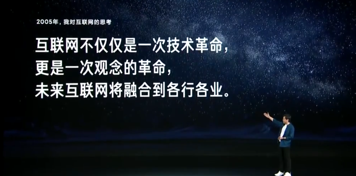 我05年的理解,我说互联网不仅仅是一次技术革命,更是一次关键的革命。第二条是,未来的互联网将融合各行各业。这个话今天你看可能没什么,但这是2005年总结的,其实就是后来大家讲的互联网思维和互联网+。