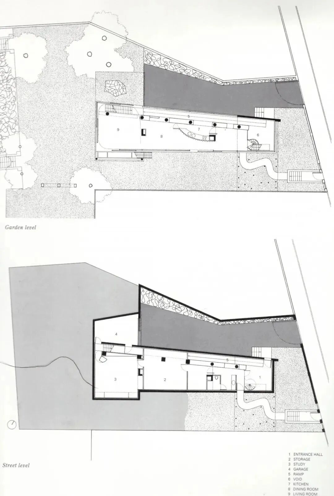 别墅位于巴黎郊外的圣克鲁区—— 一个以“莫奈式”古典景观中的19世纪房屋群为特征的社区。建筑坐落在一座陡峭的山坡上,山坡朝着塞纳河、布洛涅森林和巴黎城倾斜。场地的三面以前方的道路和两侧的邻近地段为边界,形状很窄,临街距离很近。